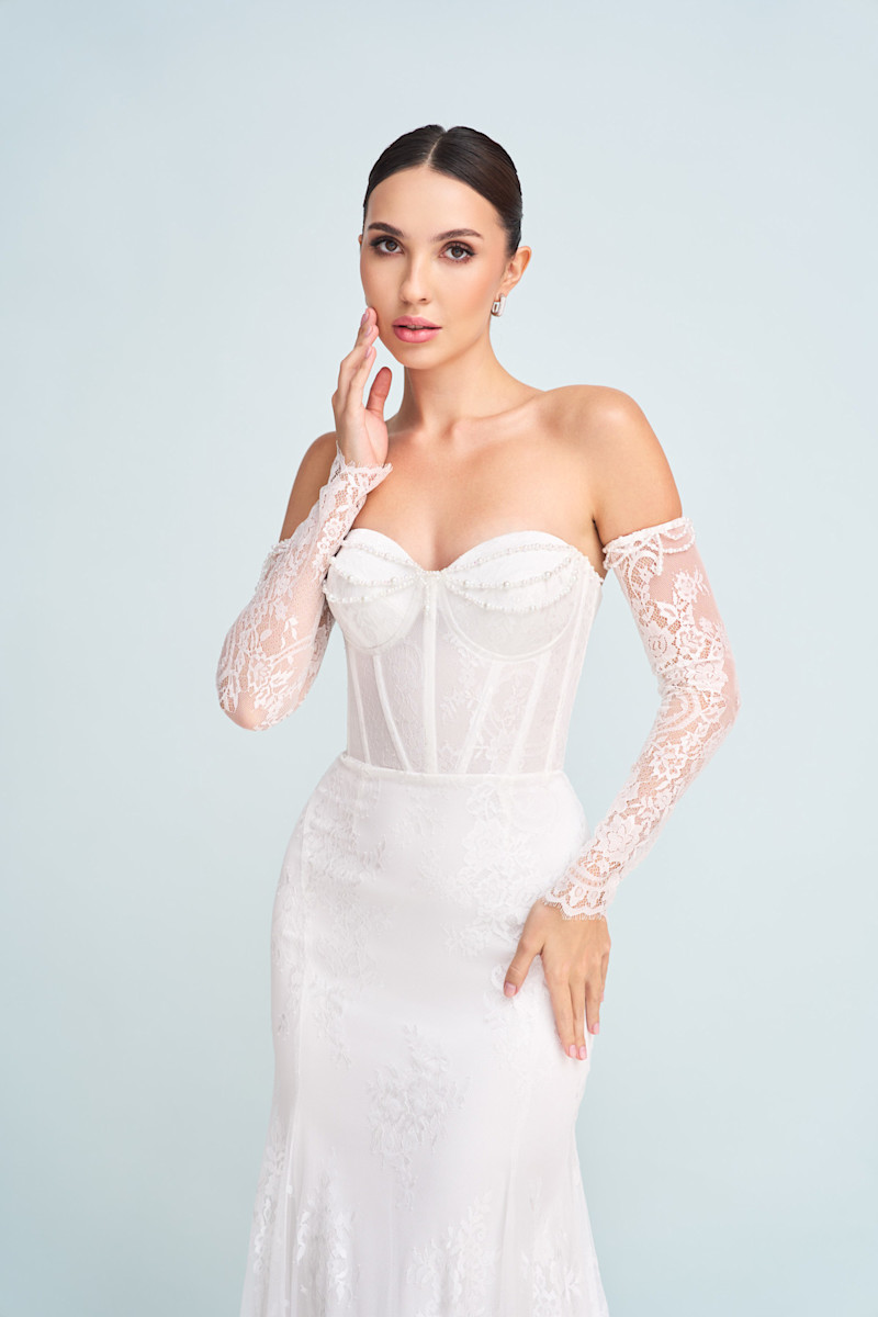 Изысканная силуэтная рыбка из кружева и декором из бисера и жемчуга .Рукава съемные